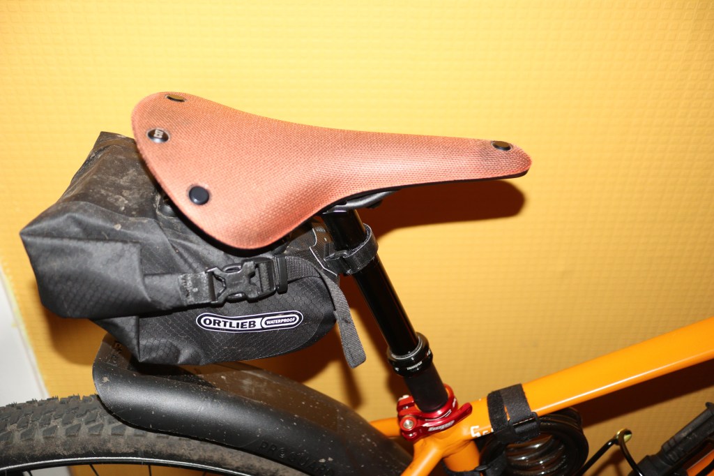 When I was building my mountain bike as a second machine, I needed a saddle. I had transferred my trusted Brooks leather saddle on to my ALICE tourer as it was well broken-in and comfortable. I did consider swapping the saddle over as I used each bike but that wasn’t really practical. So, I needed to buy a seat and had a look on e-bay. I had a Brooks cambium previously which I swapped for the leather one so I thought I’d look for another and found a blue one at a reasonable price. Purely for looks, I sourced a second hand orange saddle to fit in with the colour scheme of the rest of the bike.
