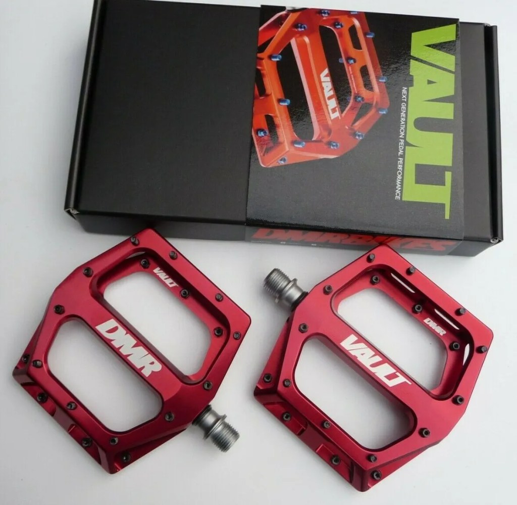 When I needed to replace the pedals on my MTB becase of a damaged axle I looked at DMR again as I’m an advocate of sticking with a brand I’m happy with. I considered going with the V12s again but found a good deal on a pair of vaults in deep red. These match the colour scheme of the rest of the bike and were discounted so much they were not much more in price than a similar set of V12s. The vault are reviewed at a higher quality but I will wait to see once I have used them a few times.