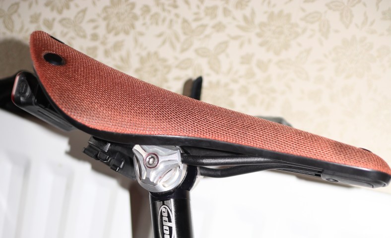 I had a look on e-bay and foud a Hope Eternity post for a good bit less than a new one. The post is machined from a strong alloy but the oiutstanding feature for me is the clamp holding the seat rails. It is formed from two concentric ribbed rings whch fit on either side of the post and are adjusted by two allen bolts, one on either side. Once the saddle rails are slotted in place, the saddle is easily tightened. Adjustment can be accurately made by loosening the bolts a couple of turns and tilting the seat. I really like this style of bracket as the bolts are easily accessed, unlike some other posts where the bolts have to be reached from underneath the saddle.