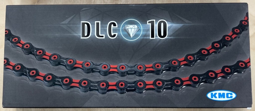 I had been using Shimano chains on my bikes. Usually I would use the ones that the manufacturer recommended for use with the chainsets I had fitted. I had only ever bought two or three chains, mainly because when fitting a new derailleur or cassette, the chain I had fitted still had a good few miles to go. But, about a year or so ago I noticed an e-bay listing for KMC DLC-10 chains. These were at a discount of nearly 60% and the reduced price was about the same as I had paid for the last Shimano chain I bought. I did a bit of research and found a lot of positive reviews. The majority of opinions were that these were of superior quality to Shimano. They were lighter, and stronger as well as being longer lasting. They also come in various colours.