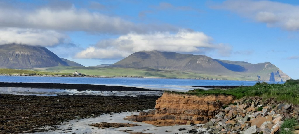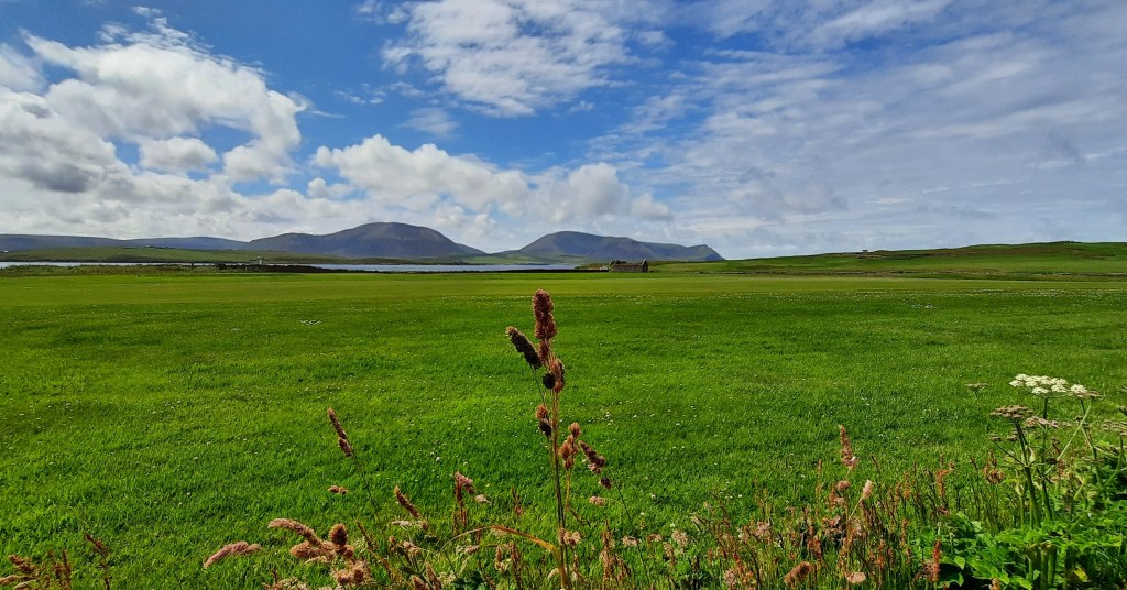 The landscape of Orkney is so different from that of its northern neighbours. The countryside is much greener with gentle sloping fields full of cattle, sheep and crops. This is probably the basis of the saying that a Shetlander is a fisherman with a croft and an Orcadian is a crofter with a boat. It can also be seen in the wide range of dairy produce from Orkney whereas Shetland mainly has its knitting and fish.