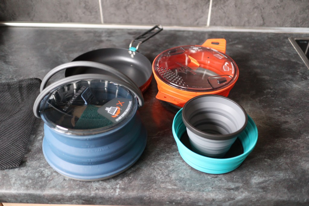 The good thing about sea-to-summit is that all these items will stack together. I have an 8” alpha pan which fits together with the kettle and cook-set and packs away to a hieght of 7cm and 20cm in diameter. I originally used a Firemaple branded pan. The quality of this non-stick frying pan was a bit better than the sea-to-summit one (apart from a slightly dodgy locking mechanism on the folding handle). The size was supposed to be the same but the sea-to-summits fits better together with the same branded cook-set.